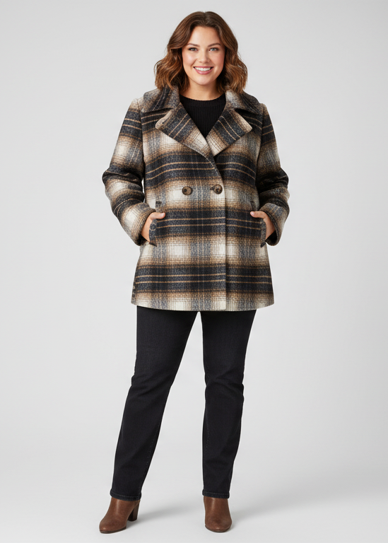 Abrigo corto con diseño de cuadros, cuello alto y cierre con botones. Su tejido cálido y los bolsillos laterales lo convierten en una prenda funcional y elegante para los días fríos. Perfecto para combinar con looks casuales o más formales, aportando estilo y confort en cada salida.
