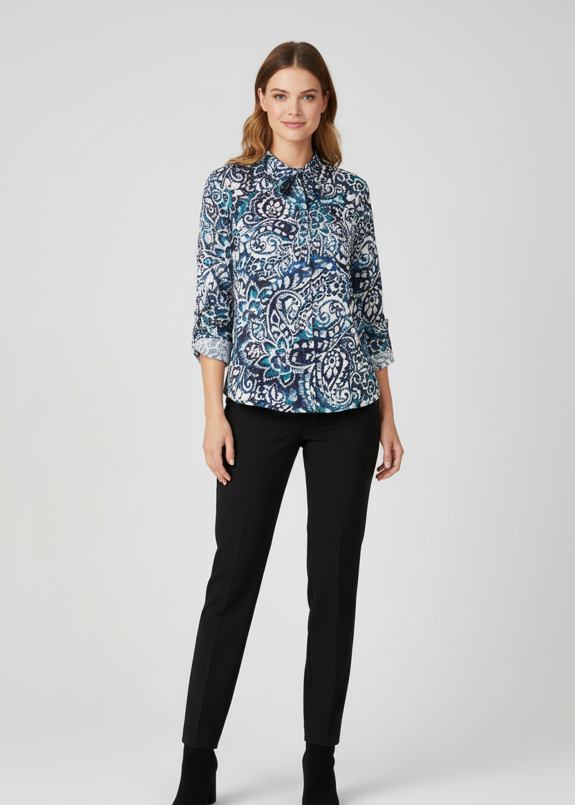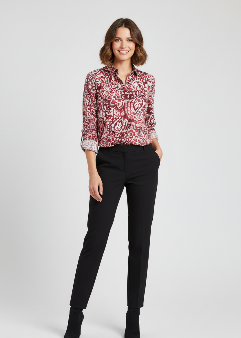 Esta camisa abotonada de manga larga es la combinación perfecta entre elegancia y estilo boho. Su estampado floral tipo cachemir le da un toque distintivo y atemporal, ideal para quienes buscan una prenda con personalidad sin renunciar a la versatilidad.