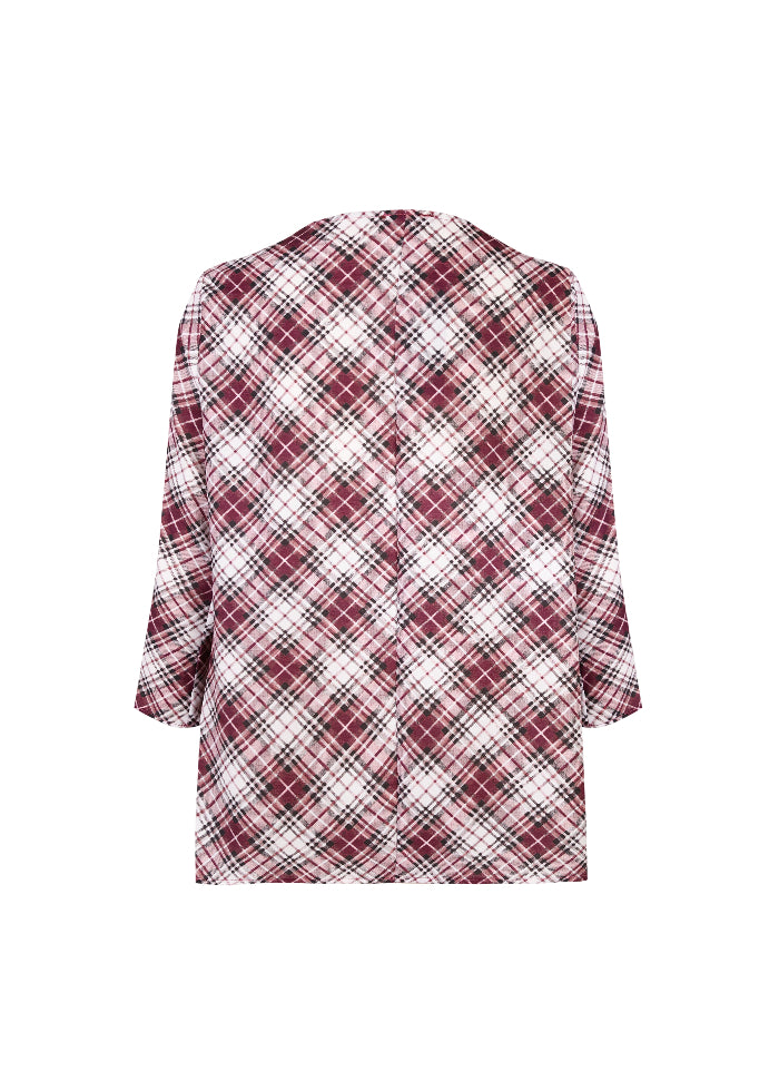 Camiseta con estampado de cuadros y manga tres cuartos