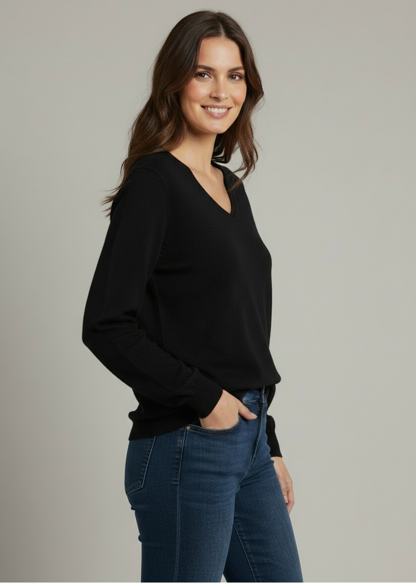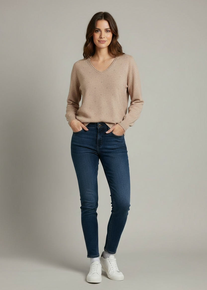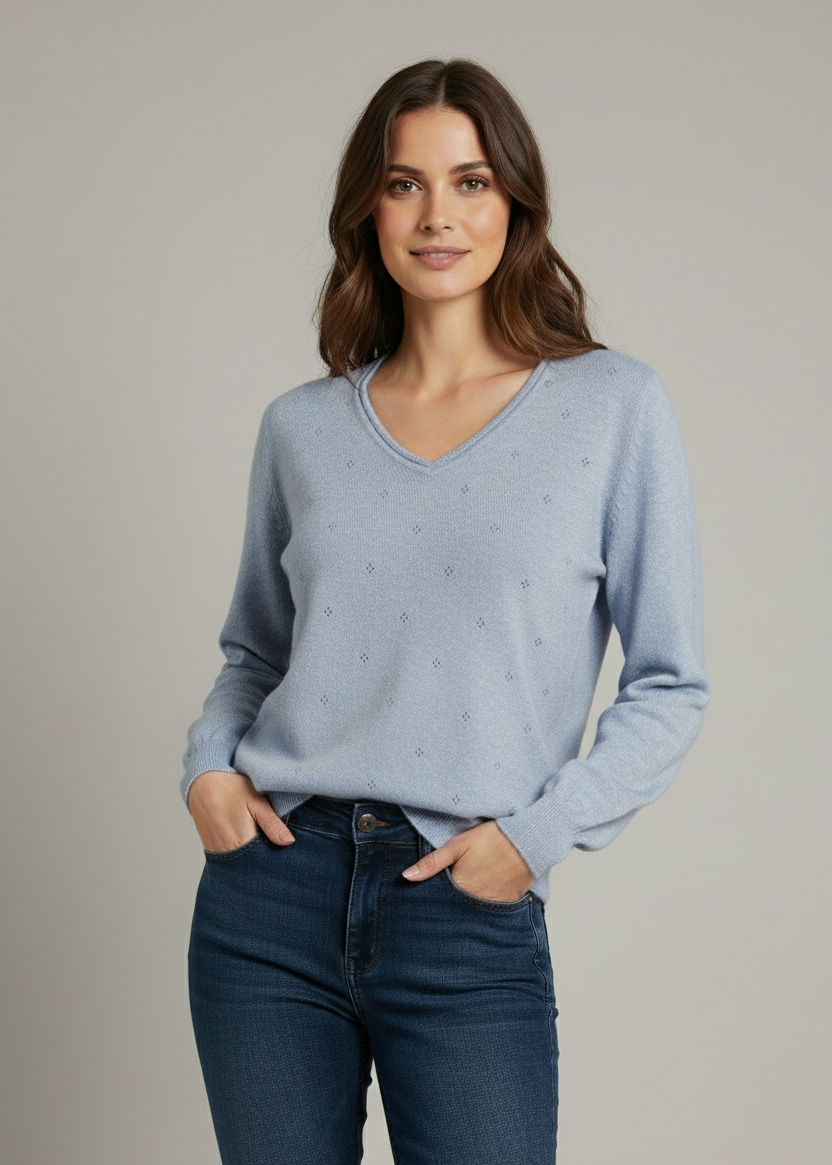 Jersey cuello en pico. Con detalles y puño cerrado.