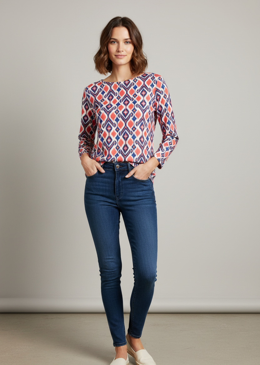 Camiseta confeccionada en suave lanilla, con cuello redondo y manga 3/4. Ideal para darle un toque de confort y estilo a tu look diario.