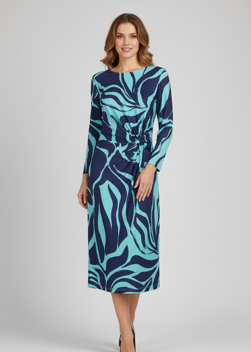 Vestido estampado en dos colores, Fruncido en la cadera, cuello redondo,