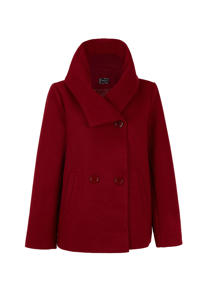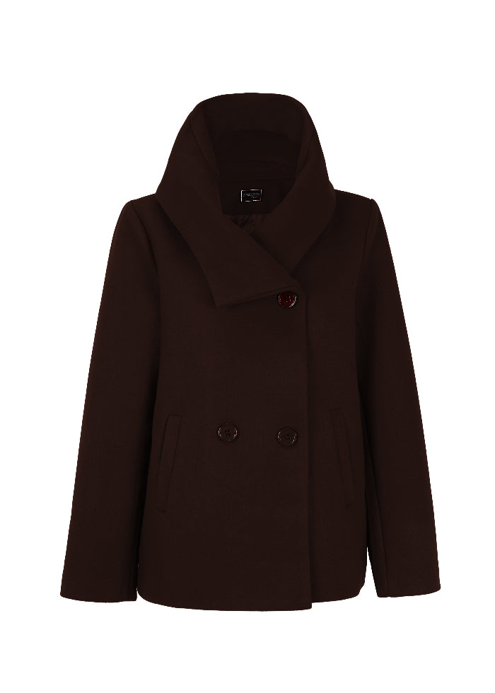 Abrigo corto con cuello alto, bolsillos y botones