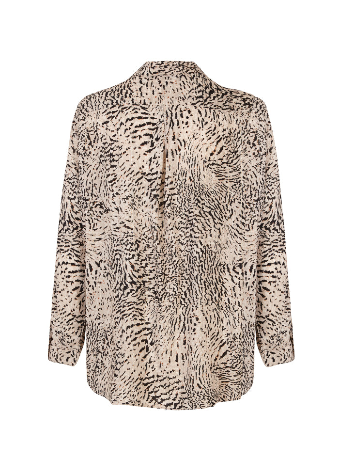 Camisa con estampado animal print y delicados hilos de lurex que aportan un sutil brillo al tejido. Su corte fluido, cierre abotonado y manga larga crean una silueta elegante y favorecedora. Perfecta para combinar con prendas básicas y elevar cualquier look con un toque sofisticado y moderno.