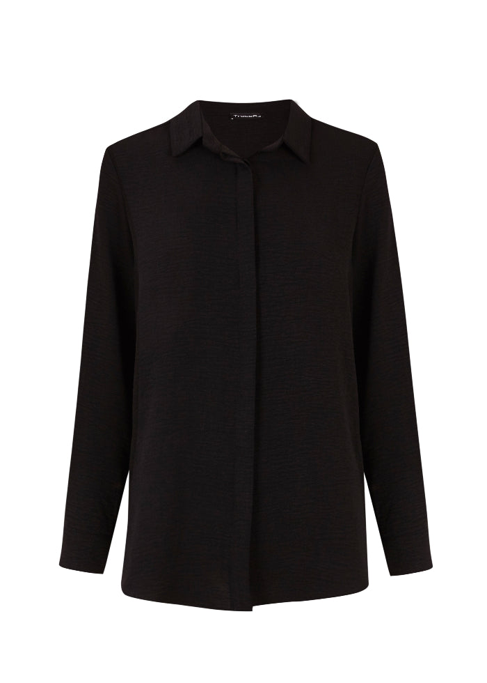 Camisa lisa de corte clásico con cuello camisero y cierre abotonado oculto, ideal para crear looks elegantes y atemporales. Su tejido fluido y manga larga ofrecen comodidad y versatilidad, perfecta tanto para el día a día como para ocasiones más formales. Un básico imprescindible en cualquier armario.