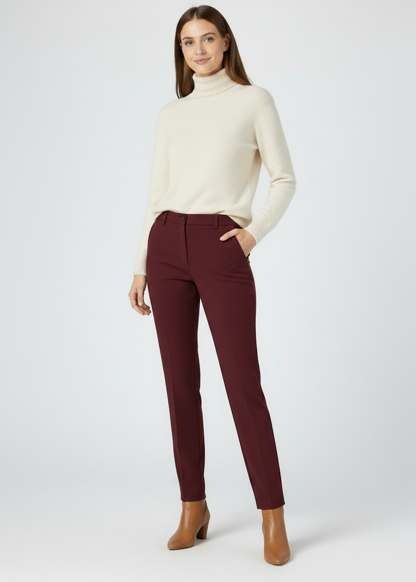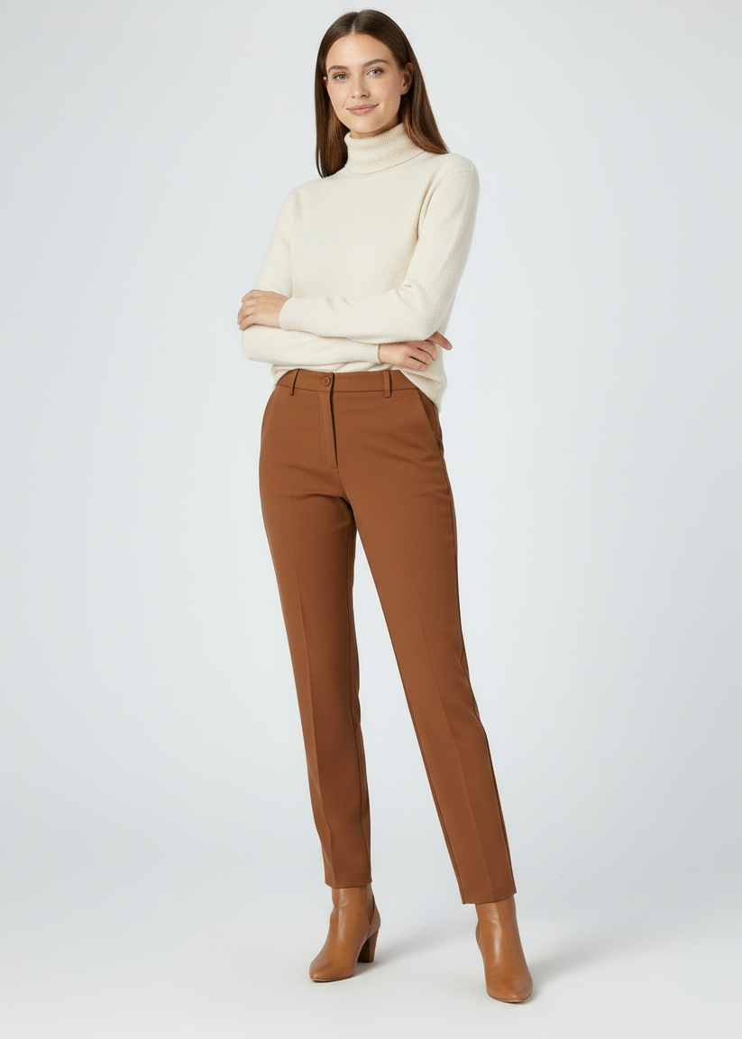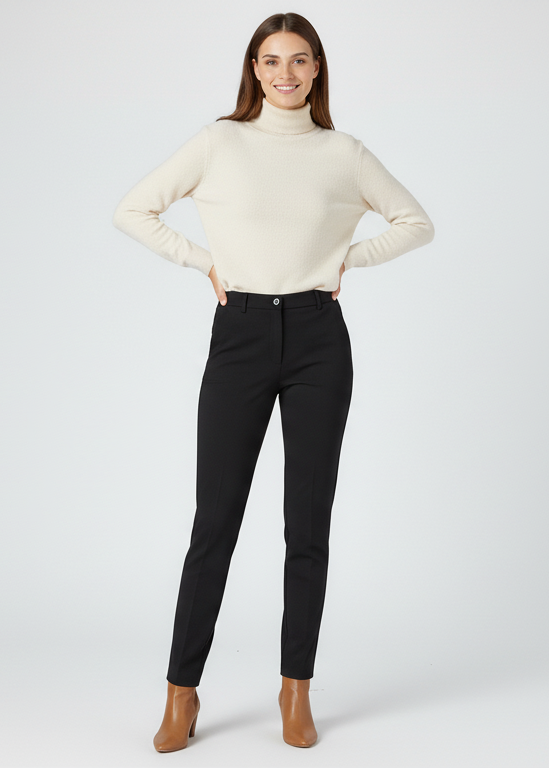 Este pantalón destaca por su diseño limpio y favorecedor, con una silueta recta que estiliza la figura y un ajuste cómodo que se adapta a la rutina diaria. Su cierre delantero con botón y cremallera aporta un toque clásico y funcional, ideal para combinar tanto con prendas formales como con looks más relajados. Una prenda versátil y atemporal que se convertirá en un imprescindible del armario.