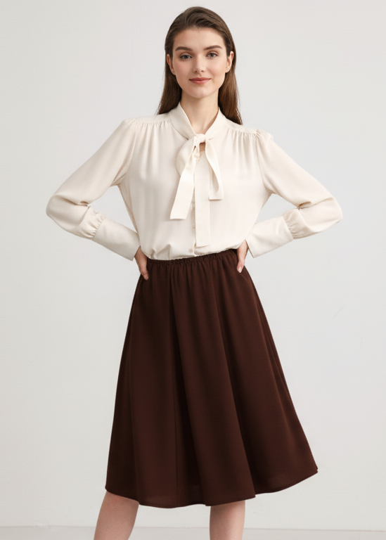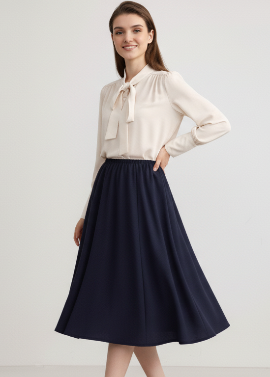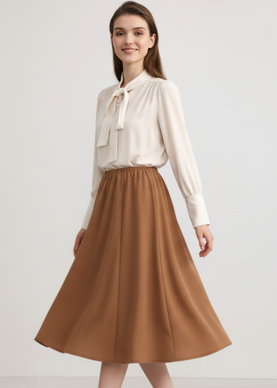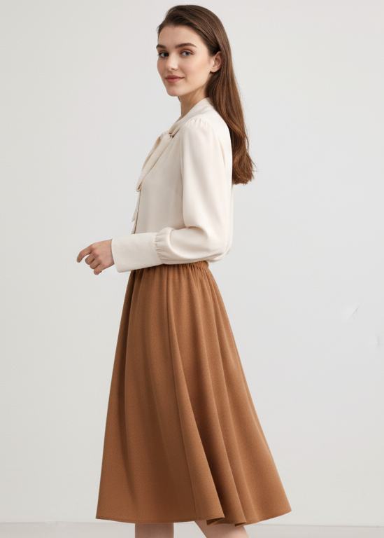 Cinturilla elástica, falda con vuelo que da un aspecto fluído.